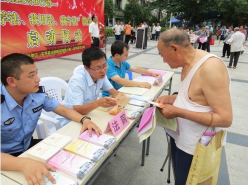 为深入学习贯彻中央、省、市、县有关文件精神,6月13日下午,盐亭县人民法院组织干警在盐亭县南门休闲广场参加了由县法制建设领导小组和县司法局主办的“中国梦·法制宣传在行动”主题教育活动启动仪式,仪式由县司法局主持,县委政法委常务副书记杜小红同志宣布了活动启动。启动仪式后,盐亭法院干警向在场老百姓发放了普法宣传资料,并充当法律知识“讲解员”,现场向群众宣传普及法律常识和诉讼基本知识。在场的群众不仅认真听取干警的宣讲,对拿到手的普法资料也认真的进行了阅读。